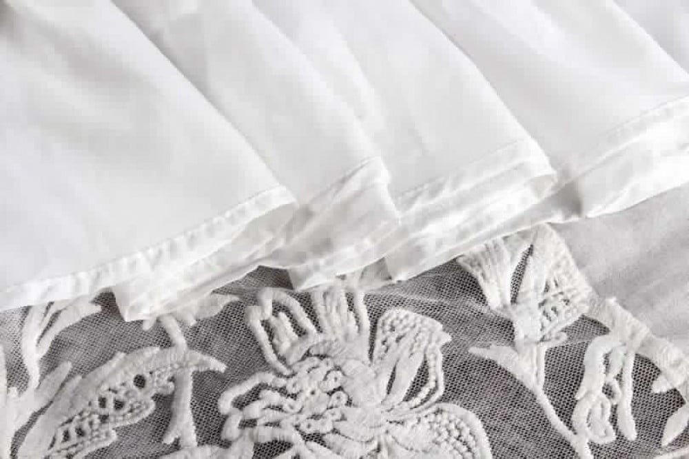 - القماش: قماش أبيض ناعم مزين بتطريز يدوي راقٍ.