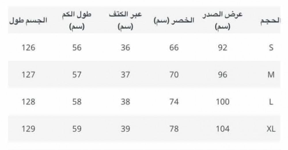 - التصميم: تصميم بأكمام طويلة واسعة وياقة مفتوحة تضفي لمسة عصرية أنثوية.