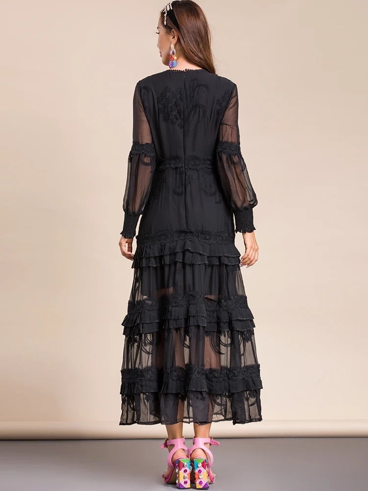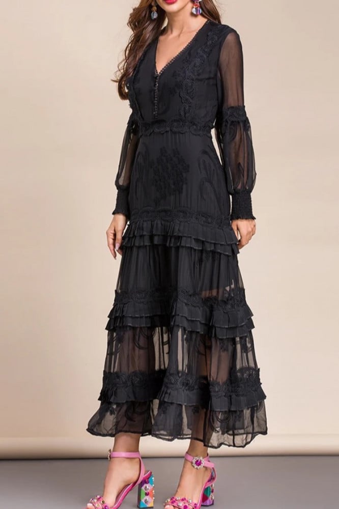 تألقي بأناقة مع فستان طبقات أسود طويل بقصة مميزة من متجر فساتين نقوة هذا الفستان المميز يجمع بين الأناقة والراحة، مما يجعله الخيار المثالي لإطلالة ليلية رائعة في المناسبات الخاصة. بتصميمه الفريد وجودته العالية، سيضفي عليك لمسة من الفخامة والتميز.