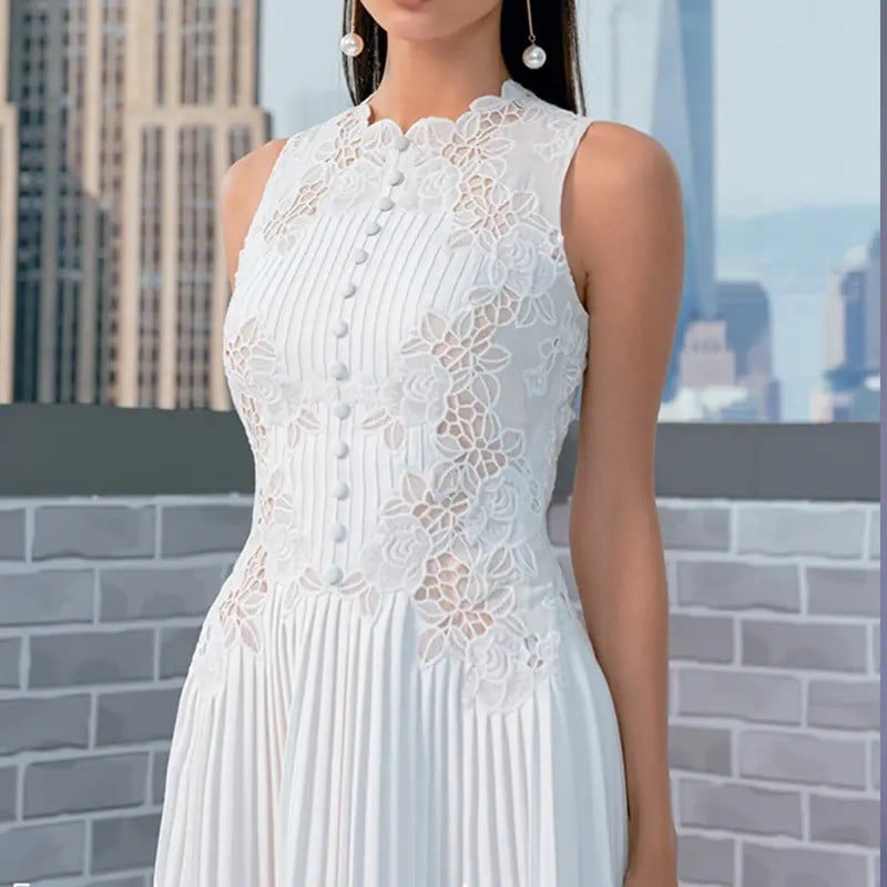 تألقي بجاذبية وفخامة مع فستان أبيض كسرات بالدانتيل ومبطن من متجر فساتين نقوة تصميم مثالي يمنحك إطلالة راقية تناسب جميع المناسبات الخاصة تم تصنيعه بجودة عالية ليكون الخيار الأمثل لمحبي الأناقة.