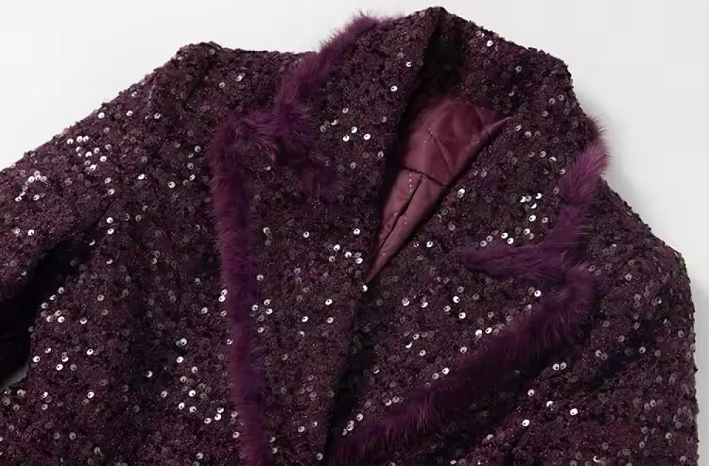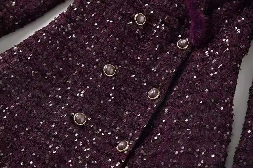 - التصميم: ياقة كلاسيكية مع أزرار أمامية ولمسة أنيقة من التفاصيل البراقة.