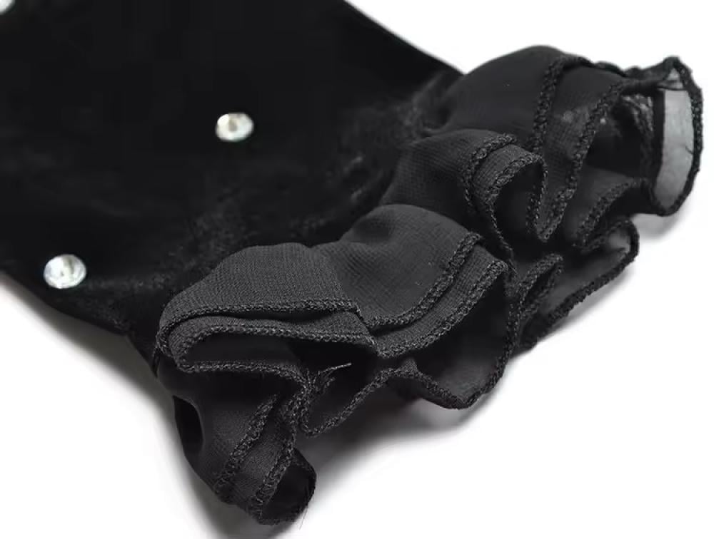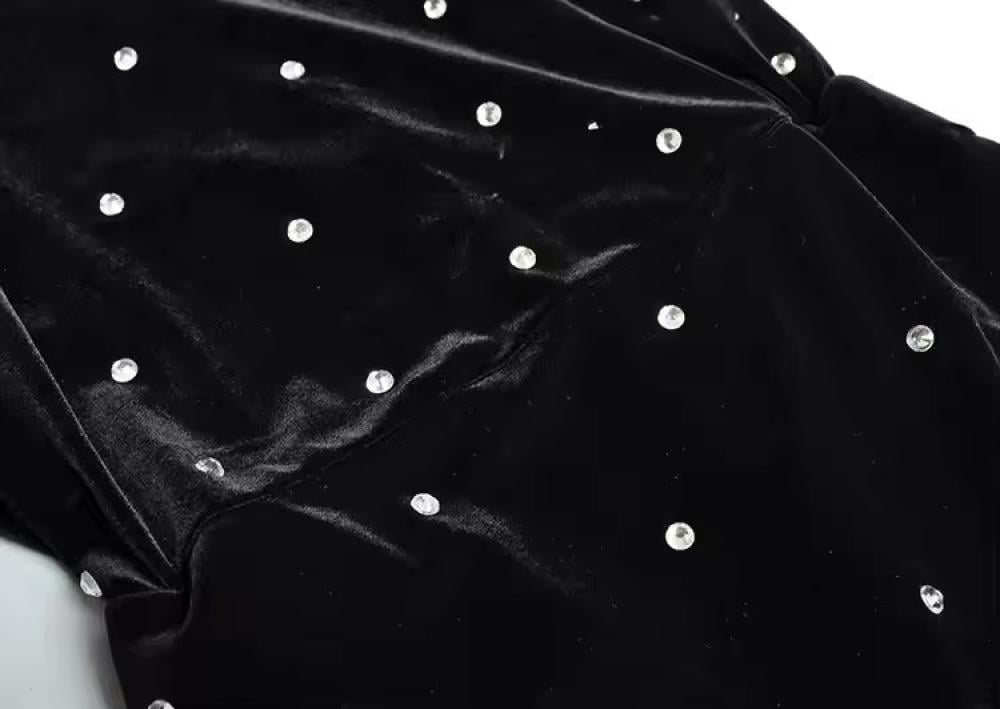 • القماش: مخمل فاخر يضفي مظهراً أنيقاً ولمسة ناعمة على البشرة.