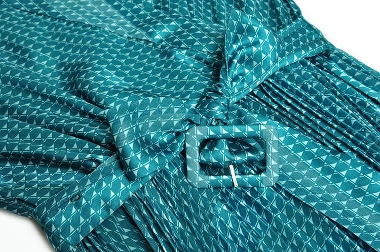 فستان طويل مكسر ناعم مع الحزام وبكم طويل
