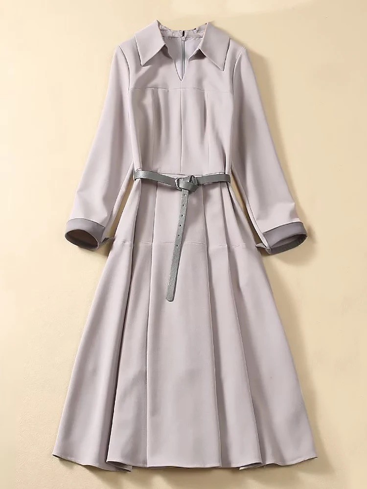 - التصميم: فستان بقصة مريحة مع أطراف أكمام مميزة وحزام لتحديد الخصر.